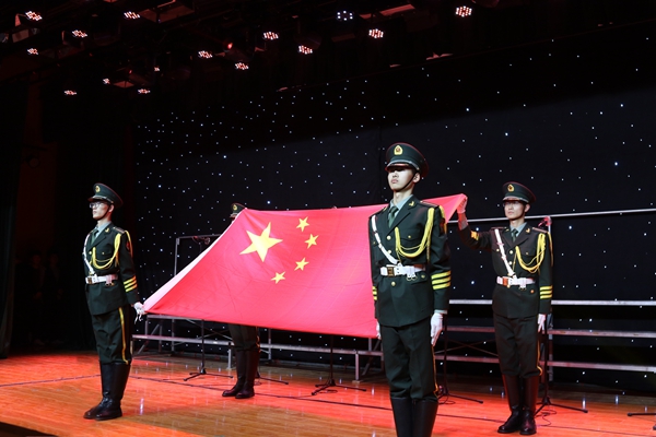 节目开始,国旗护卫队出国旗,恢宏大气的国歌声响起,全体起立,奏唱国歌。身着军装和迷彩的国旗护卫队,挺拔的站姿,雄厚的歌声,以青年的姿态展现了军人英姿飒爽、奋勇前进的精神,展现了人民军队是威武之师、文明之师的风貌,以实际行动诠释了《当那一天来临》《强军战歌》的军歌灵魂。