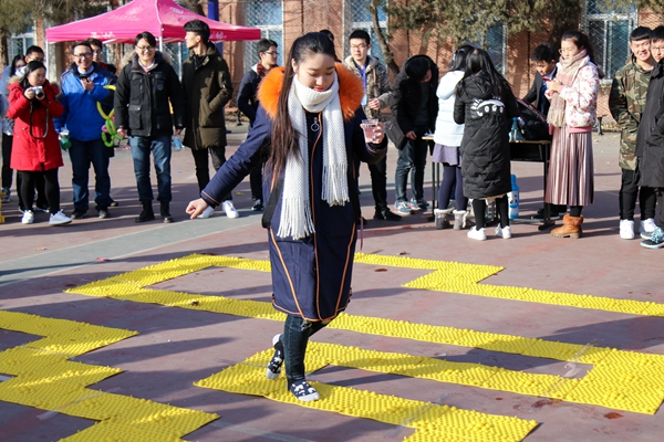 伴随着大一新生带来的歌曲串烧《改变自己》,游园会缓缓拉开帷幕。开幕式上王忠强宣布游园会开幕,祝福大家新年快乐。此次游园活动形式多样,集趣味性与益智性于一体,分游戏区和节目区两部分。游戏区中同学们可以在现场切身感受到大学生科协带给我们的高科技产品,BOE画屏、3D打印机、VR虚拟现实一体机、平衡车等。各学院也带来了一系列游戏,纸篓接球、大富翁答题、丢沙包、跳房子、愤怒网球、桌上冰球台球、数独魔方、套圈、猜灯谜、投篮等,吸引了许多同学踊跃参与。节目区中则呈现着不同的精彩节目表演。大家怀着好奇之心在各个展位前驻足观赏、玩游戏,在“巡游”中获得乐趣,感受到浓浓的节日氛围。此外,校学生会为大家提供了丰富的饮品、礼品和奖品。在最终夺取终极大奖环节中,指压板大闯关和脸盲挑战也不乏同学们活泼靓丽的身影和欢声笑语,随着颁奖典礼的举行,我校2018年元旦游园会也圆满落下帷幕。