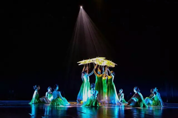 《花开时节》则由一群热爱舞蹈的姑娘们用完美灵动的舞姿,为我们展现了花开时节,万物生晖,碧波荡漾,雨中摇曳的景象。她们曼妙的舞姿,飘逸的裙角,完美的展现了花开时节的美好画面,伴着柔和的灯光,一朵朵含苞待放的花蕾,似在向我们微笑;随着缥缈的云烟,撑伞的碧衣少女,似向观众缓缓走来。姑娘们宛若凌波仙子,带观众走进梦境一般的世界。
