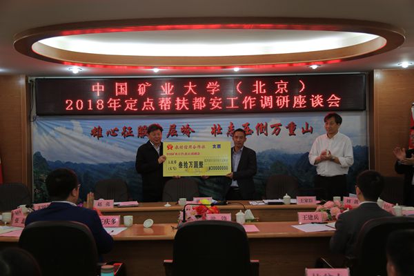 校长杨仁树强调,2018年,我校将继续深入学习贯彻习近平总书记系列重要讲话精神,扎实贯彻落实全国扶贫开发工作会议精神,广泛凝聚扶贫合力,充分发挥学校优势,开展精准对接,“输血”“造血”结合,大力帮助都安县打赢脱贫攻坚战。在美丽广西、大美都安的热土上,发扬我们矿大人艰苦奋斗的创业精神和迎难而上的拼搏精神,推动广西生态优势金招牌,助力打造“美丽广西”升级版,为淳朴勤劳的都安人民实现2020脱贫攻坚目标而努力奋斗。