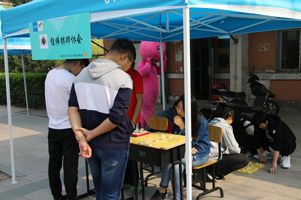 4月17日下午,社团嘉年华活动的热情继续蔓延,学院路校区篮球场外围,20多个社团参加展示,呈现出模拟步枪射击、分组桌游、棋艺较量、武术表演、指压板跳绳、你画我猜等精彩互动活动,将社团嘉年华的气氛再次推向高潮。