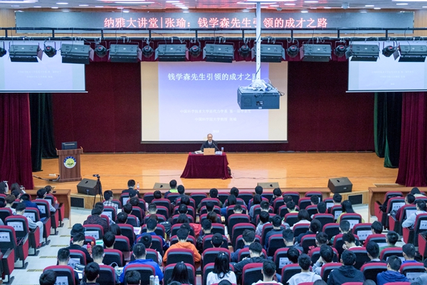 本网讯 4月17日下午,由校团委主办、校学生会承办的纳雅大讲堂系列讲座之《钱学森先生引领的成才之路》在沙河校区学生活动中心举办。本次主讲嘉宾是钱学森先生在中国科学技术大学近代力学系第一届毕业生之一——中国科学院大学张瑜教授。校团委相关部门负责人和300余名学生聆听了讲座。