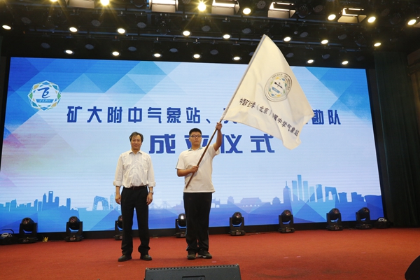 5月5日上午,王家臣副校长带队参加学院路学区首届科技嘉年华。王家臣副校长为矿大附中气象站的成立进行授旗