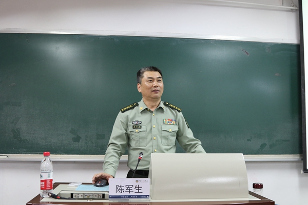 陈军生以《我军装备建设发展研究》为题作国防知识讲座。他简要回顾了我军装备建设发展的光荣历史,重点介绍了新时期我军装备取得的辉煌成就,展望了未来围绕国家战略、军民融合、科技创新、国防精神等建设的美好愿景,给同学们呈现了一堂生动精彩的军事理论课。同时,他结合自身工作经历和中外经典战例,深入浅出地讲解了国际形势和我国的安全环境,强调发展我国的高技术军事装备对增强国防力量和推进“一带一路”、实现富国强军梦想的战略意义。