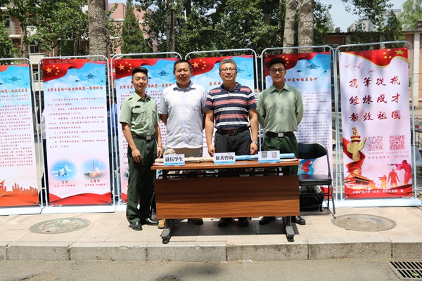 本网讯 为帮助大学生了解、掌握应征入伍相关政策和流程,鼓励学生积极应征入伍,献身国防事业,5月22日和5月24日,学校武装部分别在沙河校区中心广场和学院路校区篮西开展了征兵宣传活动。武装部部长安宇、武装部老师张玉琪以及退伍学生参加了此次宣传活动。