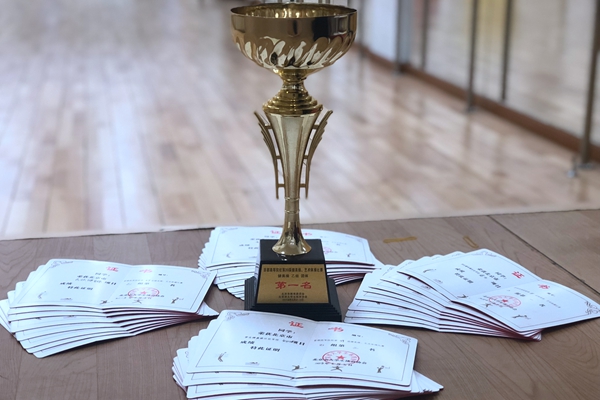 赛场夺双金,汗水铸辉煌。健美操队历时两个月的积极备战,从基本动作到难度技巧,从排列队形到整齐划一,每一次训练都脚踏实地,每一次进步都来之不易。力量、柔韧、难度技巧,这些在比赛中得分的亮点,均靠平时一点一滴的刻苦训练凝聚而成。赛场上,队员们以饱满的热情、精湛的技艺、巧妙的编排赢得了阵阵掌声,最终在强手如云的队伍中脱颖而出,再一次证明健美操队超强的战斗力。赛后,健美操队全体师生表示,优异成绩是鼓励更是鞭策,大家将恪守"勤奋、求实、进取、奉献"的校训,刻苦训练、拼搏进取,力争创造更大的辉煌,以更优异的成绩回报学校。