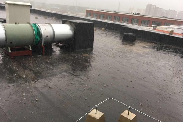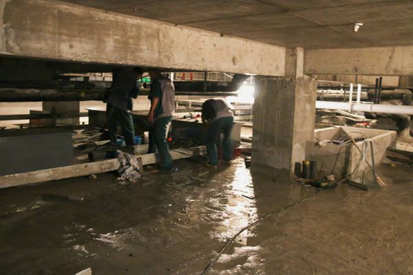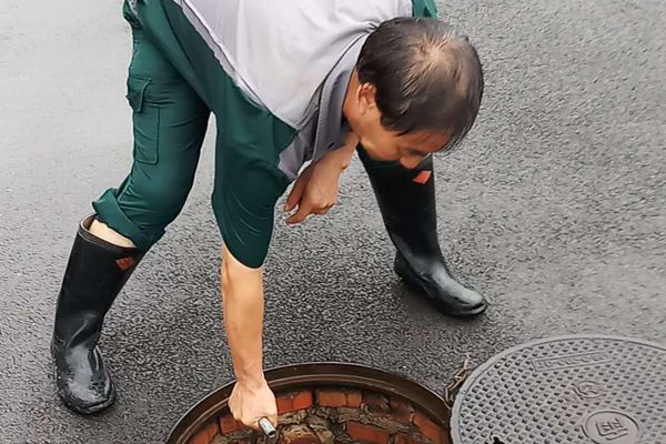 到楼宇屋顶清除雨漏管口堆积的杂物,疏通雨漏管和排水管沟。