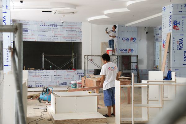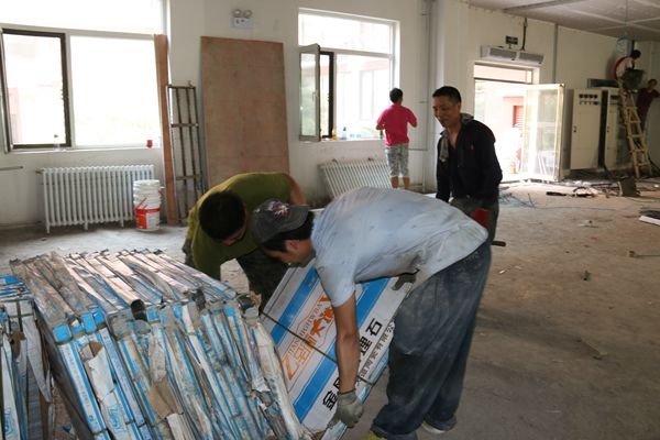 劳动者各司其职,通力合作,让简餐厅建设工作有条不紊的开展。