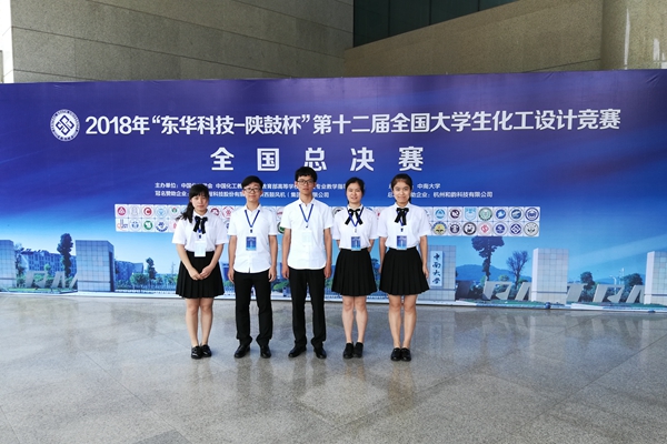 本届比赛,华北赛区(北京、天津、河北、山东、内蒙古)共有57所高校的203支团队报名参赛,在先期进行的评审中,通过专家对参赛队伍的设计文档质量、工程图纸、现代设计方法应用等综合评定,最终确定60件作品入围华北赛区决赛。8月2日至4日,第十二届全国大学生化工设计竞赛华北赛区决赛在中国石油大学(北京)举行。经过紧张激烈的比拼,我校由2015级化工类专业的学生李世帅、王鑫玉、程舒曼、王卓雅、李杨组成的“alpha.”团队(指导老师:张香兰、蔡卫滨、解强、孙永军、张海永)从参加决赛的60支队伍中脱颖而出,获得华北赛区特等奖,取得了参加全国总决赛的资格,这也使得我校成为首都高校中唯一一所连续八年进入全国总决赛的高校。8月19日至22日,全国总决赛在中南大学举行,我校“alpha.”团队在副院长王启宝教授的带领下参赛,同学们认真答辩,沉着应战,较好地展示了设计作品,在总决赛中,不负众望,获得全国一等奖。