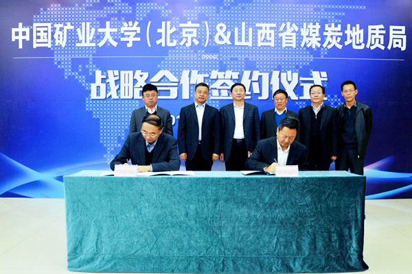 本网讯 10月29日,中国矿业大学(北京)与山西省煤炭地质局在太原举行战略合作签约仪式。中国矿业大学(北京)校长、党委副书记葛世荣与山西省煤炭地质局局长、党委副书记王学军分别致辞并代表双方签订战略联盟合作协议。山西省煤炭地质局党委书记卫洪平,党委委员、总工程师宋儒,党委委员、副局长张学彦出席签约仪式。签约仪式由山西省煤炭地质局党委委员、副局长张胤彬主持。