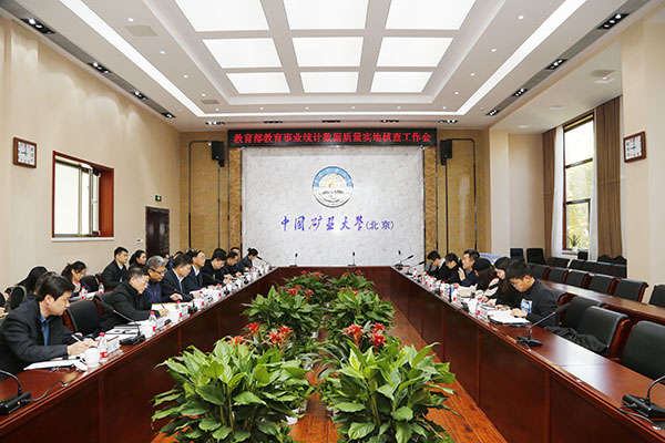 本网讯 10月31日上午,教育部教育事业统计数据质量实地核查工作会在学校举行。根据教育部发展规划司工作部署,教育部教育事业统计数据质量实地核查工作组赵琦、朱奕慰、顾晨兰、郭韶华、张桓、王鑫一行对我校教育事业统计工作进行检查指导。校长葛世荣,相关职能部门负责人及教育事业统计工作人员参加会议。