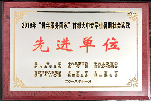 我校获评“2018年度首都大中专学生暑期社会实践先进单位”