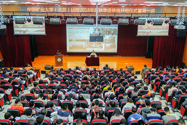 本网讯 11月13日,2018年度团校秋季进修班开班仪式暨第一讲在沙河校区学生活动中心举行。校党委副书记、团校名誉校长王忠强出席开班仪式。校党委学生工作部部长安宇,校团委副书记、团校校长孙铭晗及团校相关负责人参加开班仪式,2018级全部班级班长和团支书、各级各类学生组织干事代表等360余名学员参加仪式并接受培训。团校秘书长艾博主持仪式。