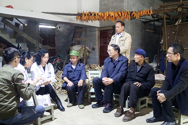 本网讯 12月18日—19日,我校校长葛世荣、副校长王家臣一行7人赴广西都安,与河池市副市长、都安县县委书记陈继勇会面,共同出席中国矿业大学(北京)2018年定点帮扶都安工作会,看望挂职干部和支教团学生,开展产业扶贫调研、上门义诊和慰问贫困户活动。