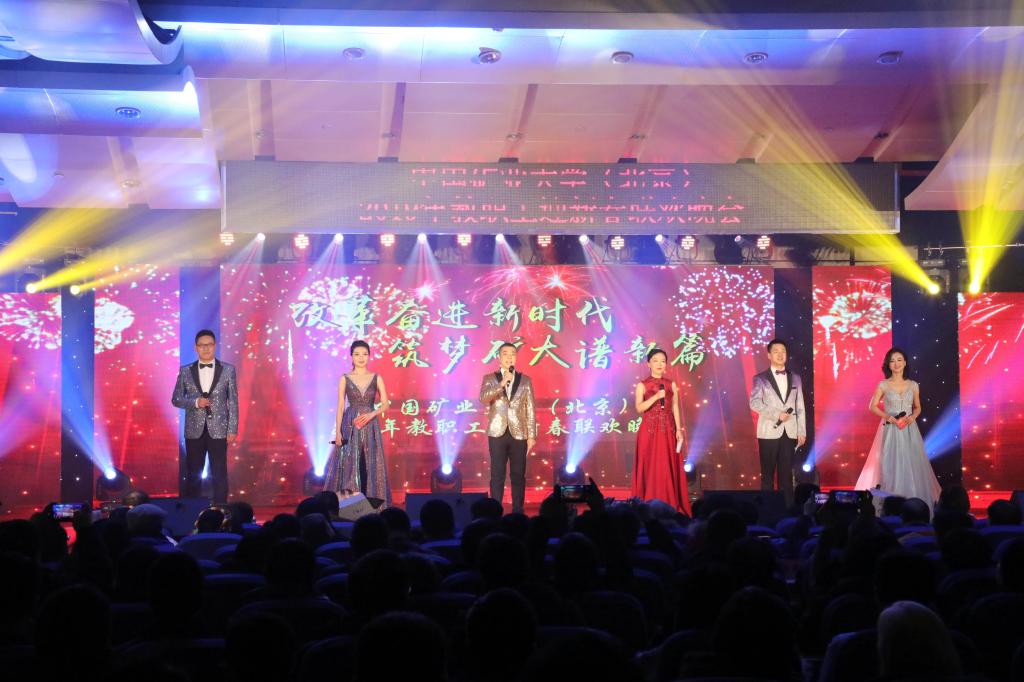 本网讯 1月11日晚,由校党委主办,校工会、党政办、校团委承办,党委宣传部、离退休处协办的学校2019年“改革奋进新时代.筑梦矿大谱新篇”教职工迎新春联欢晚会在学院路校区科技会堂举行。校党委书记徐孝民、校长葛世荣、校党委副书记兼工会主席王忠强、副校长朱书全、副校长王家臣,各学院、部、处、室负责人,全校约900名教职员工欢聚一堂,共同分享收获的喜悦,展望美好的明天。