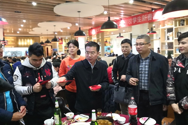 活动上,王忠强向每桌同学举杯贺岁,并为每位留校学生发放了“压岁红包”和亲情电话卡,嘱托同学们要多与家人联系,报平安,在校要注意安全,有困难要及时和学校老师、同学联系。