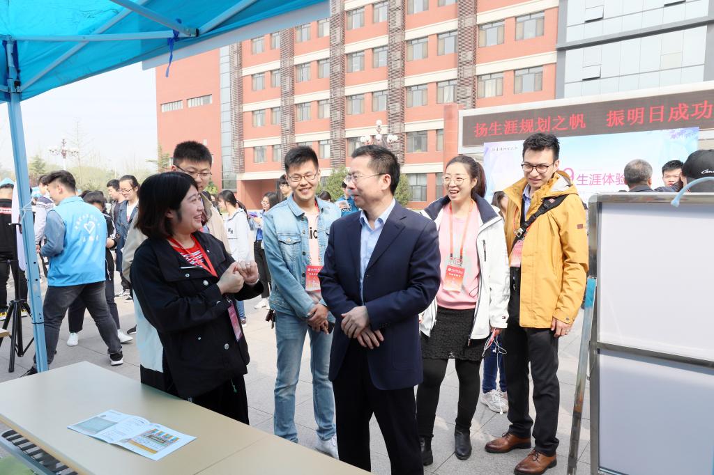 活动伊始,校党委副书记王忠强在学生工作处处长安宇、大学生就业创业指导中心主任高洁等老师的陪同下莅临现场参观了活动体验区。王忠强慰问了现场辅导员、志愿者等工作人员,仔细询问了活动内容和参与方式,对部分活动提出了中肯的意见与建议,并与大家合影留念。