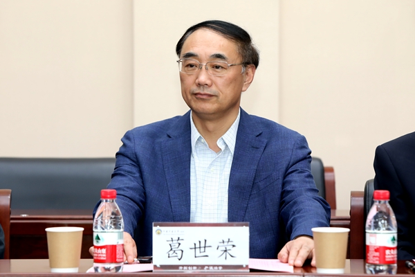 本网讯 4月19日上午,江苏省南京市六合区人民政府区长李万平、副区长施勇君一行来访我校,校党委书记徐孝民、校长葛世荣、中国科学院院士何满潮、校党委副书记王忠强等出席座谈交流会。