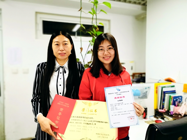 李馨予作为队长带队参加“互联网+”创新创业大赛并取得优异成绩。说起她的导师贾建丽教授,她感慨万分。贾老师不仅支持她们的活动,并且亲自担任她们的指导老师,从方案的论证、设计到实施都给了她们很多有益的建议。