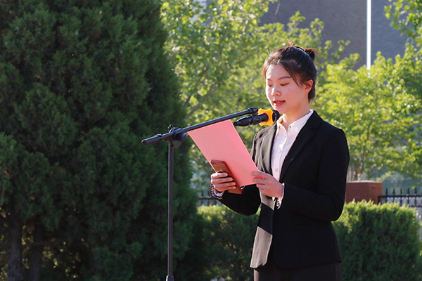 青年学生代表、文法学院17级行管专业董滢同学作了题为《传承五四精神,争做向上向善时代青年》的演讲。她从青年学生的角度,以史为鉴,以今为例,讲述了青年与五四精神的密切联系,分享了新时代优秀青年的事迹。为更好弘扬五四精神,她向全校广大青年发出倡议:青年人志存高远、坚定理想信念;脚踏实地、增长学识才干;奋勇担当、践行时代责任,争做新时代中国的有为青年。