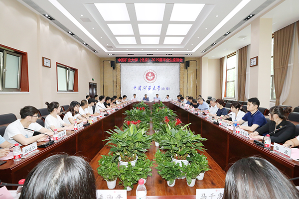 本网讯 6月19日下午,学校在1号办公楼200会议室召开了2019届毕业生代表座谈会。校党委书记徐孝民,校长葛世荣,副校长王家臣、刘波出席会议。学校相关部门负责人以及20名毕业生代表参加了座谈会。会议由刘波主持。