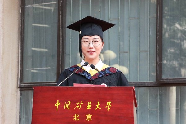 教师代表、应急管理与安全工程学院本科毕业班班主任栗婧希望同学们秉承“明德至善、好学力行”的校训精神,把个人发展融入当代中华民族伟大复兴的宏大进程中,锐意开拓,尽展才华。