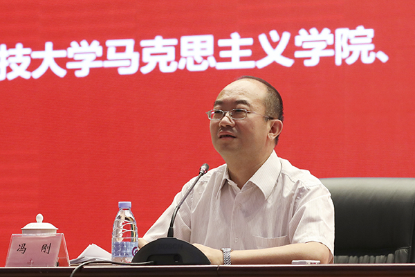 中国高等教育学会思政政治教育分会学术委员会主任、北京师范大学思想政治工作研究院院长冯刚作主题报告