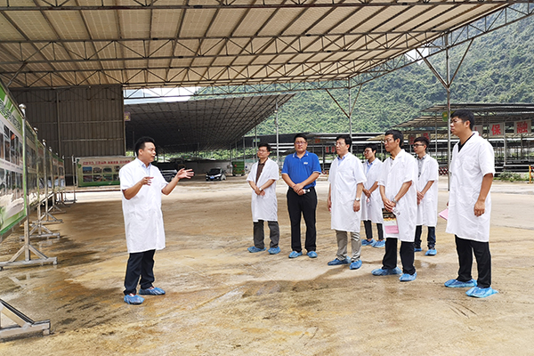调研期间,在都安县委常委、副县长、宣传部部长梁锋,我校挂职干部、都安县委常委、副县长王庆多,县政府办、扶贫办等有关部门负责人以及我校选派驻村第一书记的陪同下,我校扶贫工作组一行还深入都安县永安镇澳寒羊养殖基地、高岭镇葡萄种植基地、大都华牛场、西南冷链物流中心、龙湾乡中旧村羊场和饲料加工厂、龙湾乡琴棋村等地进行了考察。在琴棋村,扶贫工作组考察了我校参与援建的琴棋村养牛场,走访了贫困户,并代表学校全体师生送上慰问品。