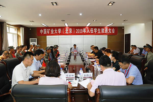 本网讯 9月9日下午,我校2019年入伍学生欢送大会在沙河校区一教206会议室举行。校党委副书记王忠强出席大会并讲话。教务处、保卫处、总务处、武装部和各学院学生工作负责人、28名入伍学生以及各学院辅导员老师参加了会议。会议由武装部副部长童军武主持。