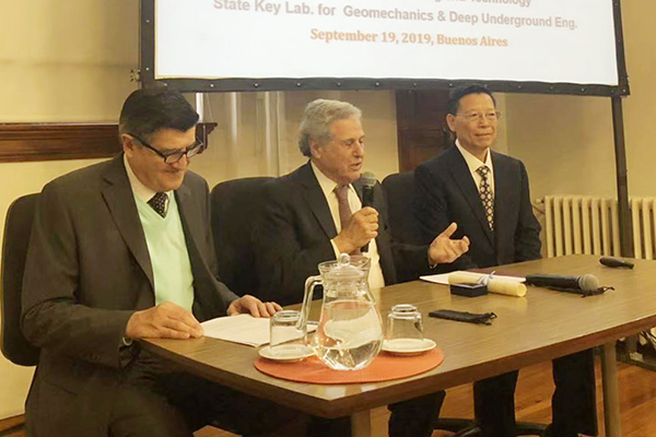 据悉,经阿根廷岩石力学学会推荐,阿根廷工程院投票评审,2018年12月,何满潮院士正式当选阿根廷工程院院士。仪式后,何满潮院士应邀作了题为“软岩研究新进展”的学术报告。中国岩石力学与工程学会副理事长唐春安教授、谢富仁教授,中国岩石力学与工程学会副秘书长徐文立陪同。