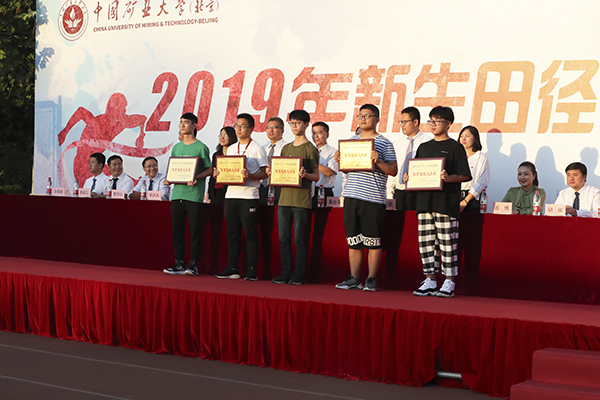 下午5:30,大会举行闭幕式。总裁判长、体育教研部主任杨三军宣布比赛成绩,学生工作处处长安宇宣布“体育道德风尚奖”评选结果。机电与信息工程学院、化学与环境工程学院、力学与建筑工程学院获得新生团体总分前三名;能源与矿业学院、应急管理与安全工程学院、地球科学与测绘工程学院、化学与环境工程学院、理学院分别荣获“体育道德风尚奖”。