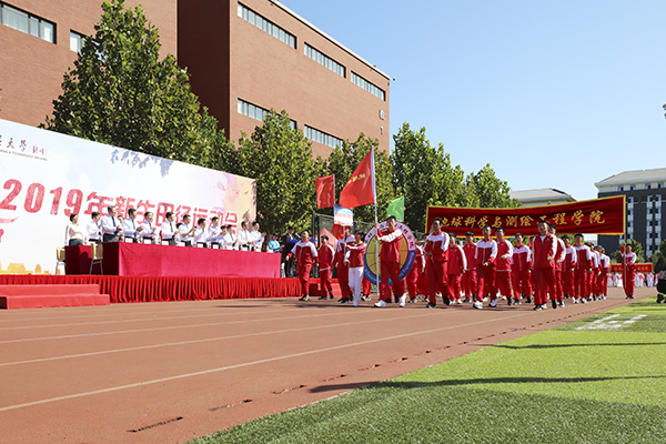 本网讯 9月24日,我校2019级新生田径运动会在沙河校区体育场举行。校党委副书记王忠强,副校长刘波、赵峰华及相关部门负责人出席开幕式。赵峰华主持开幕式。
