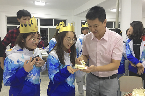 校团委书记孙铭晗为志愿者们过集体生日