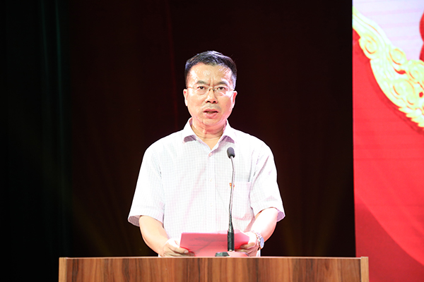 校党委副书记、纪委书记董晞宣读“爱国情、强国志、报国行”主题征文获奖名单。2019年暑期,征文启动后,广大师生踊跃投稿,专家组从经学院精选后的130篇文章中,评审出特等奖10名、一等奖20名、二等奖20名,以及5个优秀组织奖。篇篇文章饱含爱国之情,表达了对中华人民共和国成立70周年的祝福。