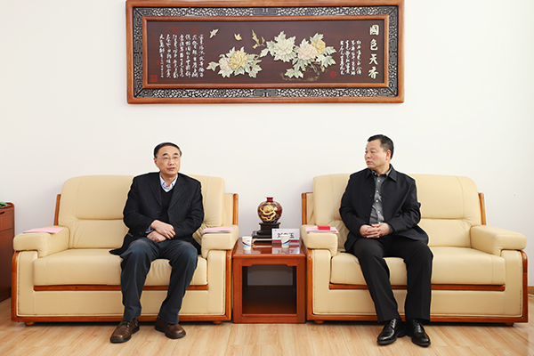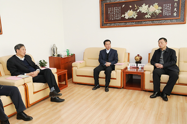 校党委副书记王忠强、副校长王家臣与峰峰集团总经理刘存玉会谈