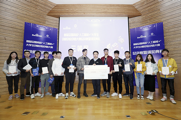 本网讯 10月21日,由全国大学生创新创业实践联盟与百度公司联合主办的首届全国高校“人工智能+”大学生创新创业创造决赛在北京百度大厦举行。本届大赛吸引了300多支队伍近2000名学生参赛,覆盖55所“双一流”高校。经过初赛、复赛、暑期训练营等环节的激烈角逐,来自哈尔滨工业大学、厦门大学、武汉大学、华中科技大学、中国矿业大学(北京)等22所高校的32支队伍最终突围进入决赛。行业专家从作品的商业性、创新性、技术可行性等多方面评测,最终评出特等奖3项,一等奖5项,二等奖10项,三等奖14项。由我院控制科学与工程专业研究生、信息工程和计算机科学与技术专业本科生组成的学生团队共获得三等奖2项、创新奖1项,并获得2000元奖励。指导教师王振翀教授和杨克虎教授获得优秀指导教师称号。