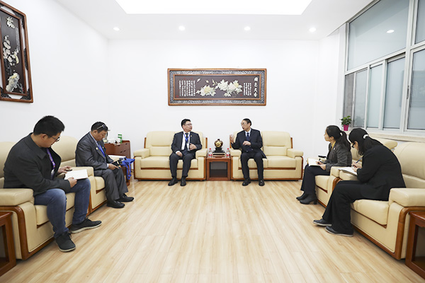 本网讯 11月9日,蒙古科技大学(Mongolian University of Science and Technology)校长Ochirbat Baatar教授携该校地质与采矿工程学院院长Purev Lkhamsuren教授来访我校,并参加我校110周年校庆,校长葛世荣会见了代表团,能源与矿业工程学院、国际合作与交流处相关人员参加了会谈。