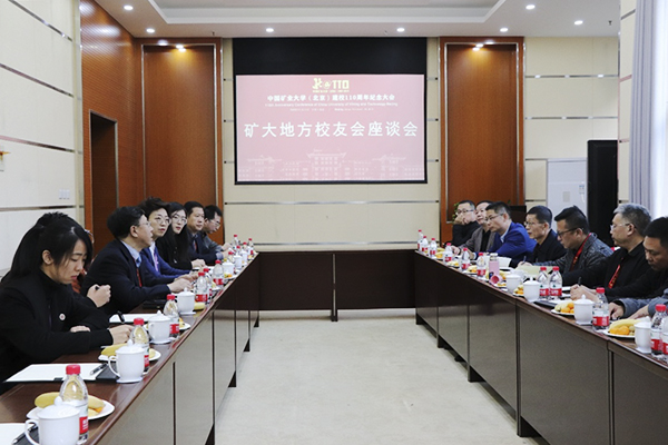本网讯 11月10日下午,在庆祝中国矿业大学(北京)建校110周年之际,学校召开地方校友会会长代表座谈会。副校长赵峰华出席会议并与来自全国各地的20余名校友会代表亲切座谈。对外联络与合作处全体工作人员参加座谈会。