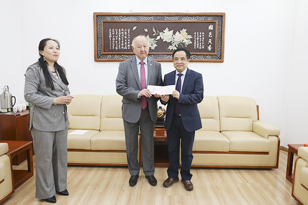 Rakishev Bayan代表萨特帕耶夫大学为我校110周年校庆赠送了礼物,并为获奖者颁奖。王家臣向Rakishev Bayan院士和Yryszhan Zhakypbek副教授的到来表示欢迎,并表示,哈萨克斯坦是“一带一路”沿线重要国家,哈萨克斯坦萨特帕耶夫大学与我校长期合作,打下了良好的合作基础,这一奖项是对两校长期合作的认可,对两校意义重大。Rakishev Bayan感谢王家臣副校长和各位教授的热情接待,并详细介绍了哈萨克斯坦萨特帕耶夫大学与我校的交流合作情况,期待与我校建立更加紧密合作关系,进一步提升合作层次,拓展合作领域,推动两校全方位、更深入的交流。