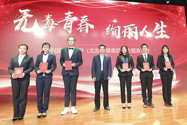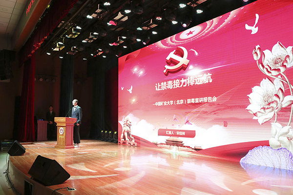 本网讯 为进一步加强校园禁毒及防诈骗宣传教育力度,增强师生的安全防范意识,提高师生自我保护能力,11月21日,由学校党委宣传部、学工处联合主办、文法学院协办的“无毒青春 绚丽人生——中国矿业大学(北京)禁毒防骗主题宣讲会”在沙河校区召开。校党委副书记王忠强出席宣讲会,并为宣讲人颁发荣誉证书。党委宣传部、党委保卫部、学生工作处、文法学院、校团委相关负责人和北京市禁毒教育基地禁毒教育高校公益联盟项目负责人张松松,及沙河校区近300名师生参加了宣讲会。