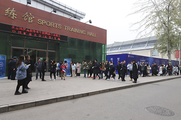 本网讯 11月22日下午,2020届北京地区高校毕业生第二场校园联合双选会——中国矿业大学(北京)专场在我校体育训练馆举行,来自全国各地的120家用人单位来校揽才,我校及周边高校数千名应届毕业生前来应聘。