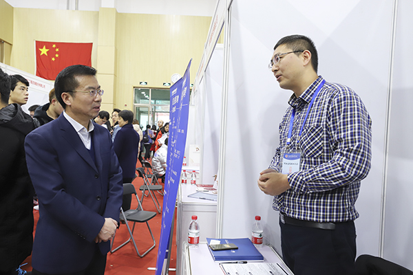 校党委副书记王忠强深入到双选会现场与中国黄金集团有限公司、中建交通建设集团有限公司和四川省煤田地质工程勘察设计研究院等用人单位进行交流,详细了解企业需求与毕业生应聘情况,听取用人单位对人才培养、专业建设、就业服务等方面的建议,并与毕业生现场交流,询问学生投递简历的情况,鼓励学生抓住机遇。