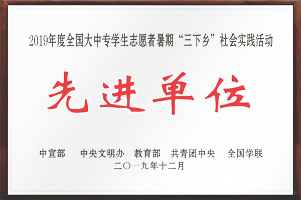 我校获评“2019年全国大中专学生志愿者暑期‘三下乡’社会实践活动优秀单位”