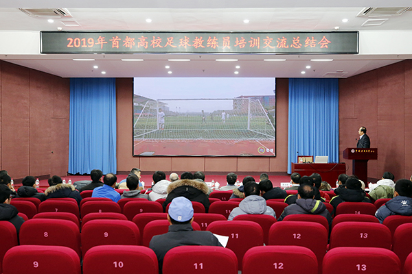 本网讯 近日,2019年首都高校足球教练员培训总结会在我校召开。本次活动由北京市大学生体育协会足球分会主办,我校体育教研部承办。来自全市41所高校70余位代表参加了本次会议。会议对2019年首都高校体育协会足球分会工作进行了全面总结,对2019年优秀团队及教练员进行了表彰。我校获北京高校进步足球运动队、北京高校足球工作贡献奖,赵振东获北京高校优秀足球教练员荣誉。