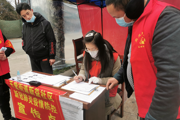 本一党支部王麦可同学在社区疫情防控宣传点登记居民出入信息