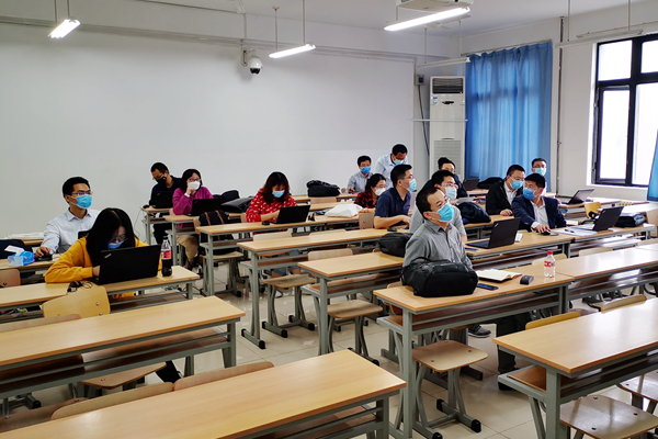 动员培训会采取线下和线上同步方式开展,中国移动公司为复试教师和工作人员讲解复试软件和平台的使用方法,并对管理员、考官、考生等功能进行了全流程演示。培训会后,各学院分别到教室进行了实地测试演练。