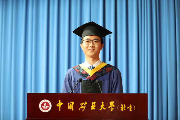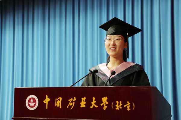 研究生毕业生代表、能源与矿业学院罗茗在发言中表示,矿大人的精神深深地烙印在我们每个人心中,将继续激励着我们在新的人生阶段、新的工作岗位上,谱写壮丽、无悔的青春之歌。