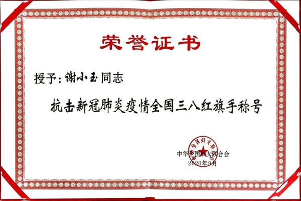 中国矿业大学(北京)学生谢小玉荣获“抗击新冠肺炎疫情全国三八红旗手”荣誉称号