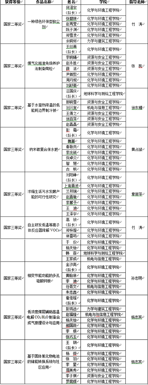 本次竞赛具体获奖作品和参赛学生、指导教师的名单如下: