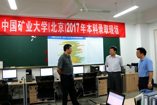 本网讯7月9日下午,校长杨仁树、副校长王家臣前往学校本科生招生录取工作现场,检查2017年本科生招生录取工作,并看望慰问招生录取工作人员。监察处有关人员陪同检查。